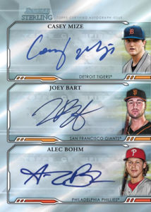 Bowman Sterling Baseball makes a triumphant return in 2019 with an all-new product configuration. An autograph heavy product featuring the top rookies, prospects and MLB veterans on the extremely popular chromium technology.