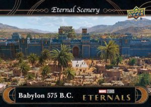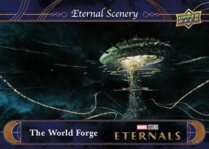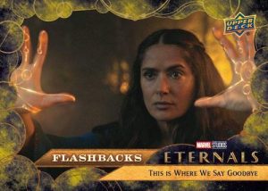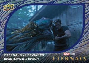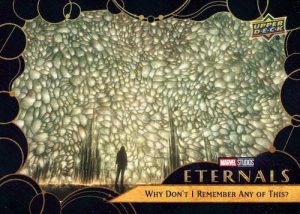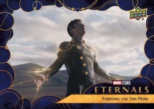 2023 Upper Deck Eternals leads off with a 100-card base set that contains 25 character cards. Key moments from the film are also displayed in the cardboard series.