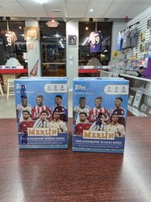 2024-25 Topps UEFA Club Competitions Merlin Soccer conjures the spirit of UEFA competitions with an immersive 200-card base set spotlighting elite rookies, veterans, and legends from the UEFA Champions League, UEFA Europa League, and UEFA Conference League. This Hobby product stands out with exclusive Atomic Refractor Parallels and mystical Merlin’s Match Ball Signature and Dual Match Ball Signature Autograph Relics, available only in Hobby boxes. Rip into cards and autographs of emerging young talents Endrick, Ethan Nwaneri, Chido Obi, Mikey Moore, and Toni Fernández, as well as established stars like Nico Williams, Lamine Yamal, Cole Palmer, Jude Bellingham, and Kenan Yildiz.