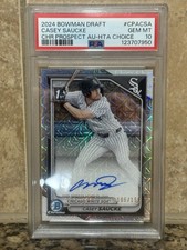 Step into the future of baseball and witness the origin of greatness with 2024 Bowman Draft Baseball! Each hobby box features the top prospects from the 2024 MLB® Draft and delivers THREE (3) Chrome Autograph cards per box!