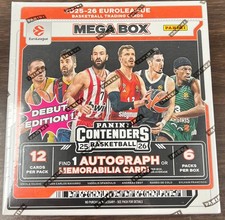 2025-26 Panini Contenders EuroLeague Basketball is the iconic brand’s first EuroLeague release, spotlighting top legends, current superstars, and rising prospects from Europe’s elite teams. This Hobby product delivers exclusive parallels, inserts, and SSP chases, including 2 autographs per box. Collect cards and signatures of the game’s biggest names in a rich, EuroLeague-focused checklist.