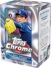 Track and search the in-depth 2025 Topps Chrome Baseball Value Box checklist using team, player, insert, and parallel filters on most major checklists sites (if available).