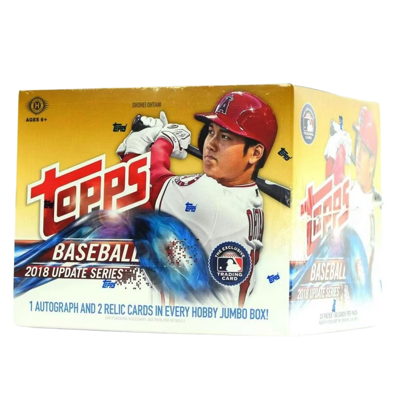 2018 Topps Update Series Baseball Jumbo celebrates the highlights of the 2018 MLB season, delivering an expansive checklist of rookie call-ups, veteran trades, All-Star Game moments, and more in a supersized format. This Jumbo SKU stands out for guaranteeing one autograph and two relic cards per box—its premium configuration—plus improved odds and exclusive content for serious collectors. Find rookie and veteran content from stars like Ronald Acuña Jr., Shohei Ohtani, Juan Soto, Gleyber Torres, Austin Meadows, Bryce Harper, Jose Altuve, Aaron Judge, Chipper Jones, and George Springer.