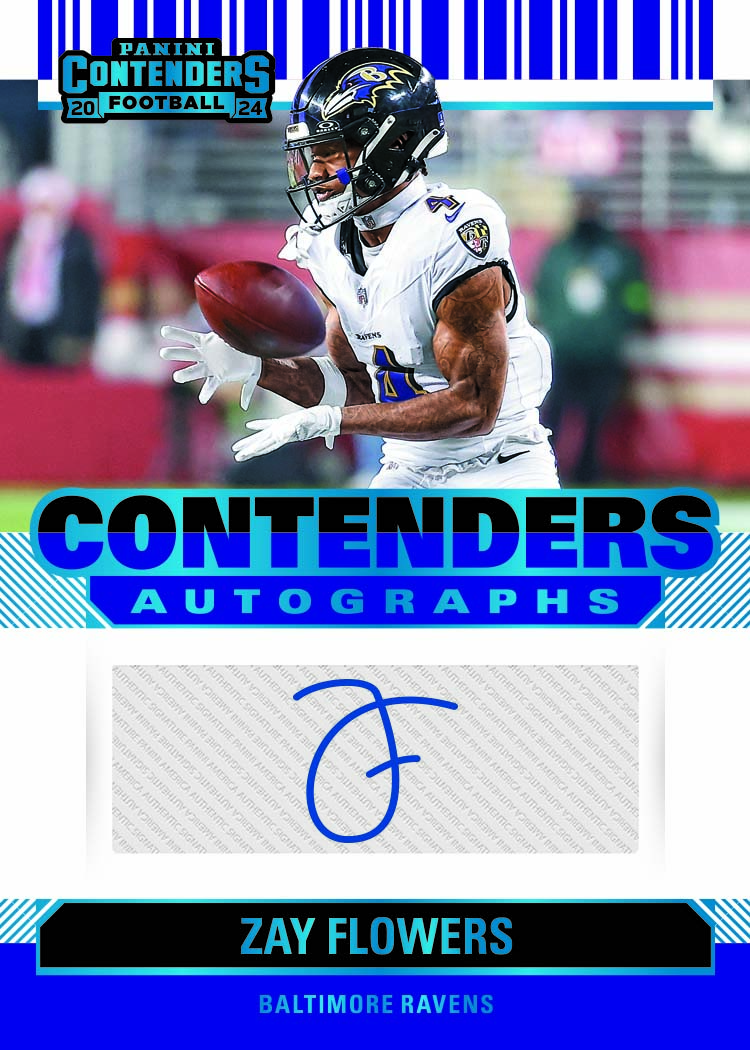The iconic Contenders Football returns for the 2024 season with its trademark array of on-card autographs featuring the top rookies in the game. Headlined by the sought-after Rookie Ticket RPS insert and a bevy of chase-worthy parallels, this Hobby edition delivers an exceptional collecting experience with five autographs per box (including one on-card signature).