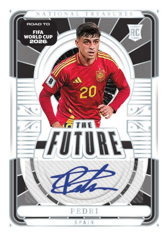 2025-26 Panini National Treasures Road to World Cup Soccer brings the premium National Treasures brand back to the pitch, celebrating the countdown to the FIFA World Cup 2026™. Covering over 30 national teams, this set delivers must-have cards and hits of stars past, present, and future. The checklist features elite veterans, breakout young talent, and soccer legends from powerhouse squads like Brazil, Germany, and France. Each box bursts with 8 autographs or memorabilia cards, plus a chase for rare 1-of-1s, multi-autographs, and exclusive parallels. Collectors can hunt for top names across the world game in a true high-end soccer product.