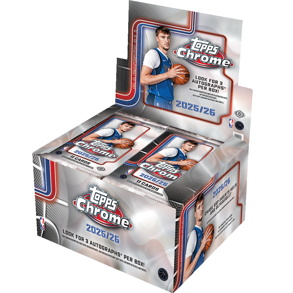 2025-26 Topps Chrome Basketball Jumbo delivers every box with 2 autographs, 3 numbered parallels, 3 Refractor parallels, and 2 inserts, including one Case Hit insert per case. Collect a 299-card set packed with top rookies and stars, and chase ultra-rare SSPs, exclusive parallels, and on-card autos!