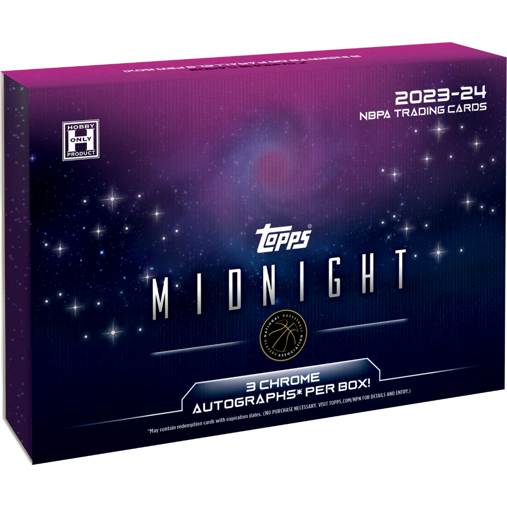 2025-26 Topps Midnight Basketball blends premium design with a late-night NBA theme, delivering a truly unique Hobby experience. Each box features bold autographs drawn from sets like Stroke of Midnight, Midnight Sun, Dark Matter, and introduces new Dark Marks signatures and the first-ever Rookie Patch Autographs from the 2025-26 draft class. Look for high-profile names across the deep checklist, including rookies Cooper Flagg, Dylan Harper, Kon Knueppel, Ace Bailey, Khaman Maluach, and veterans Tyrese Haliburton, Jayson Tatum, Jalen Brunson, Giannis Antetokounmpo, and Stephen Curry. Exclusive to this Hobby SKU are 3 autographs per box, premium inserts, and a chase for spectacular case hits and ultra-rare SSPs.