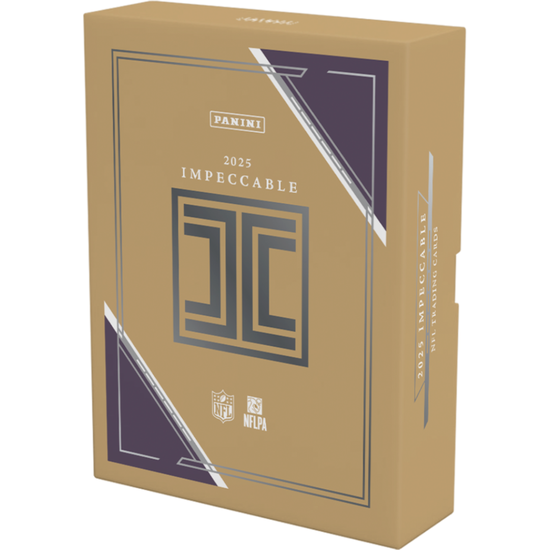 Find big hits in 2025 Panini Impeccable Football Hobby! Each box delivers 5–6 autographs (including 1 RPA) plus unique Elegance patch autos and stunning memorabilia. Chase the ultra-rare Silver & Gold Bar case hits as you hunt NFL legends, stars, and top rookies in a deep checklist built for high-end NFL collectors.