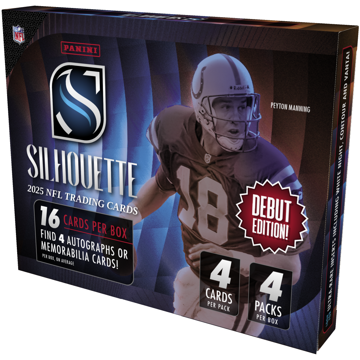 2025 Panini Silhouette Football marks the anticipated debut of the Silhouette brand in football, bringing collectors premium memorabilia cards, bold autographs, and ultra-rare chase inserts within a Hobby format. This release is built for those seeking top-tier rookies, NFL legends, and rare memorabilia hits, all within an exciting 2025 NFL trading card checklist. Look for autograph and memorabilia cards from standout rookies and football’s biggest stars, along with stunning new insert designs like White Night, Contour, and Vanta.