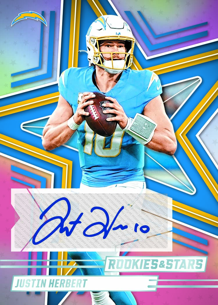 2025 Rookies & Stars Football Hobby returns with a collector-favorite blend of NFL rookies, stars, and legends across a vibrant base set, stunning inserts, and Hobby-exclusive content. Great for those chasing top rookies, seasoned veterans, and hobby-only parallels, this release is anchored by 2 autographs and 2 memorabilia cards per box, plus a deep, 200-card base checklist. Find autographs and cards from the NFL’s future and present standout names.