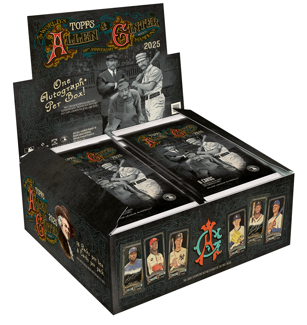 2025 Topps Allen Ginter X Baseball puts a contemporary spin on the renowned Allen & Ginter line, featuring a bold black design that transforms the nostalgic vibe into modern collector’s art. Hobby boxes deliver one on-card autograph, and this X edition stands apart with exclusive Ginter X Chrome Variations and an unpredictable blend of MLB rookies, stars, legends, and creative icons. Chase key prospects and superstars like James Wood, Jacob Wilson, Dylan Crews, Mike Trout, and Juan Soto.