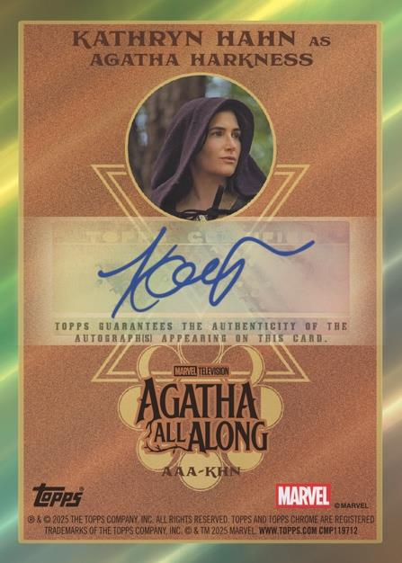 - Agatha All Along Auto Variation (dual-sided chrome) – #/50, Black #/10, SuperFractor 1/1