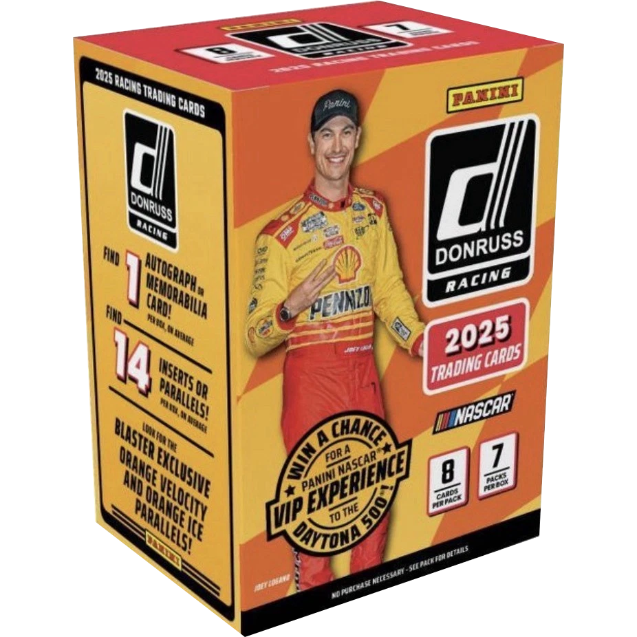 Find blaster-exclusive parallels in 2026 Panini Donruss Racing Value! Each blaster offers 7 packs of 8 cards, with current NASCAR stars, rookies, and legends. Chase fan-favorite inserts, rare autographs, and memorabilia hits in this loaded product perfect for collectors of every era.