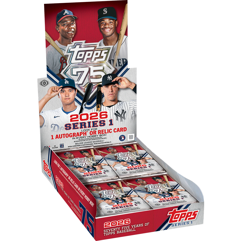 2026 Topps Series 1 Baseball Hobby launches the 75th Anniversary celebration of the iconic Topps Baseball brand, setting the stage for the year’s flagship MLB trading card release. Built on a striking new design, this Hobby product delivers a deep 350-card base set with MLB’s most prominent stars, sought-after rookies, future stars, league leaders, and team cards. Key names include Jac Caglianone, Roman Anthony, Jacob Misiorowski, Aaron Judge, Shohei Ohtani, and Mike Trout. Unique to 2026 Topps Series 1 Baseball Hobby are exclusive anniversary-themed inserts, a robust array of autographs and relics, and the full roster of base parallels, making this a must-have for collectors and set-builders alike.